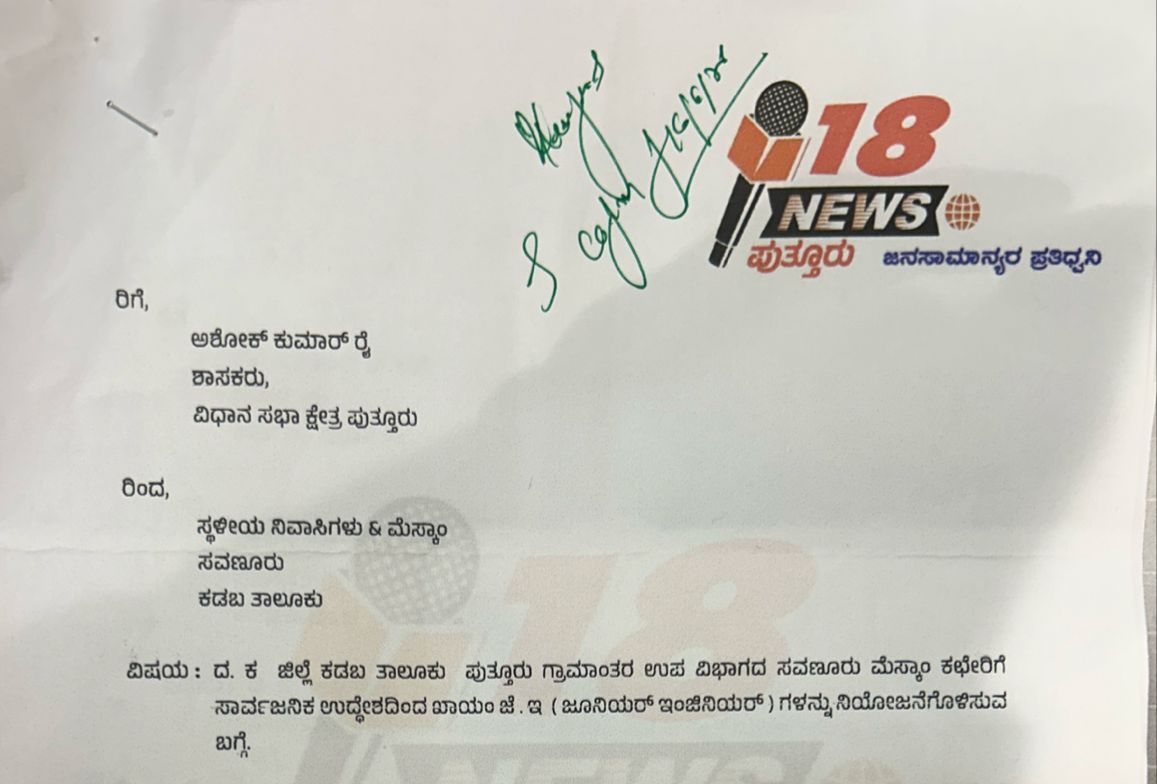 - ಈ ಎಲ್ಲಾ ಸಮಸ್ಯೆಗಳಿಗೆ ಮುಕ್ತಿ ಸಿಗಲಿ ಎಂದು ಸಾರ್ವಜನಿಕರ ಪರ 18 ನ್ಯೂಸ್ ಪುತ್ತೂರು ಡಿಜಿಟಲ್ ಮಾದ್ಯಮವು ಶಾಸಕರಿಗೆ ಮನವಿ ನೀಡಿರುತ್ತೇವೆ.