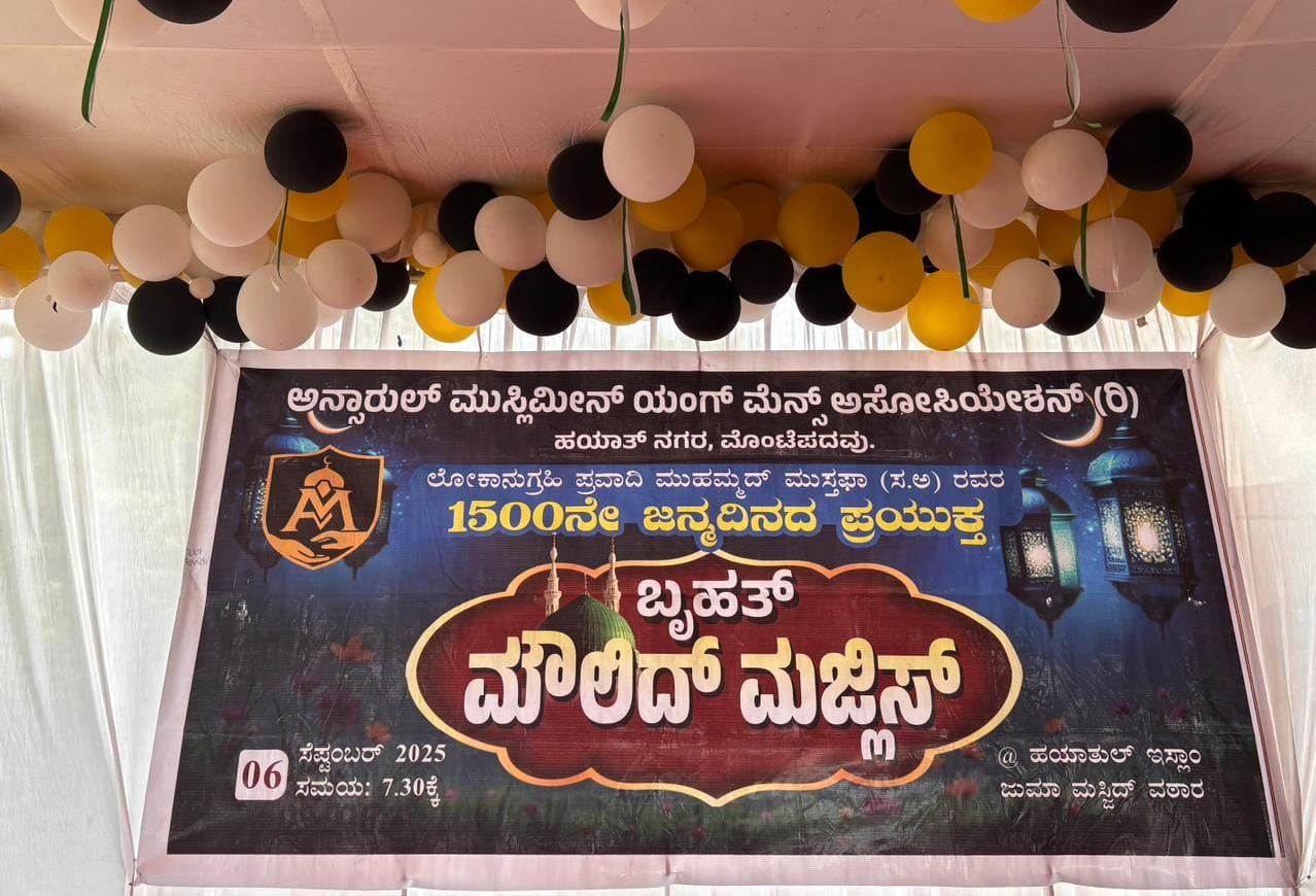 ಇಂದು ಮೊಂಟೆಪದವು : ಅನ್ಸಾರುಲ್ ಮುಸ್ಲಿಮೀನ್ ಯಂಗ್ ಮೆನ್ಸ್ ಅಸೋಸಿಯೇಶನ್ AMYA (ರಿ) ಹಯಾತ್ ನಗರ ಇದರ ವತಿಯಿಂದ ಬೃಹತ್ ಮೌಲಿದ್ ಮಜ್ಲಿಸ್