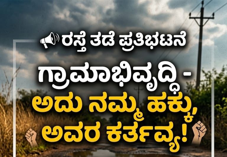 ರಸ್ತೆ ದುರಸ್ತಿಗಾಗಿ ಬೃಹತ್ ಪ್ರತಿಭಟನೆ! ✊ ನಮ್ಮ ಹಕ್ಕಿಗಾಗಿ, ನಮ್ಮೂರಿನ ಅಭಿವೃದ್ಧಿಗಾಗಿ ನಾವೆಲ್ಲರೂ ಒಗ್ಗಟ್ಟಿನಿಂದ ಭಾಗವಹಿಸೋಣ.