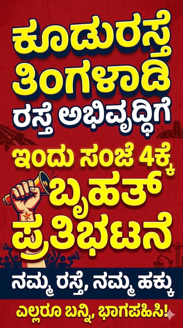 ಇಂದು 13/04/2026) 4 ಘಂಟೆಗೆ , ರಸ್ತೆ ದುರಸ್ತಿಗೆ ಆಗ್ರಹಿಸಿ ಬೃಹತ್ ಪ್ರತಿಭಟನೆ .