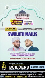 ನಾಳೆಯಿಂದ ‘ಕೂರತ್ ತಂಬಳ್’ರ ಪ್ರಥಮ ಉರೂಸ್.