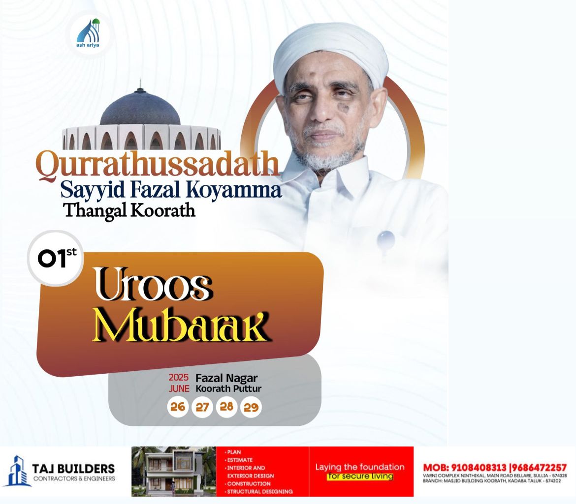 ಕೂರತ್ ತಂಬಳ್ ಅವರ ಜೀವನ ಚರಿತ್ರೆಯನ್ನೊಳಗೊಂಡ ಪುಸ್ತಕವನ್ನು ಎ.ಪಿ ಉಸ್ತಾದ್ ಬಿಡುಗಡೆಗೊಳಿಸಿದರು.ಕಾರ್ಯಕ್ರಮದಲ್ಲಿ ಸಯ್ಯದ್ ಹಾಮಿದ್ ಇಂಬಿಚ್ಚಿಕೋಯ ತಂಜಳ್ ದುವಾ ನೆರವೇರಿಸಿದರು. ಸಯ್ಯದ್ ಅಬ್ದುರಹ್ಮಾನ್ ಮಸ್ತಊದ್ ತಂಬಳ್ ಅಲ್ ಬುಖಾರಿ ಕೂರತ್ ಅಧ್ಯಕ್ಷತೆ ವಹಿಸಿದ್ದರು. ಮುಖ್ಯಸ್ಸುನ್ನ ಪೊನ್ಮಳ ಅಬ್ದುಲ್ ಖಾದರ್ ಮುಸ್ಲಿಯಾರ್ ಅಬ್ದುಸ್ಸಲಾಂ ಮುಸ್ಲಿಯಾರ್ ದೇವರ್ಶೋಲ ಮುಖ್ಯ ಪ್ರಭಾಷಣ ನಡೆಸಿದರು. ವೇದಿಕೆಯಲ್ಲಿ ಹಲವಾರು ಉಲಮಾ-ಉಮರಾ ಪ್ರಮುಖರು ಉಪಸ್ಥಿತರಿದ್ದರು. ಸಿರಾಜುದ್ದೀನ್ ಸಖಾಫಿ ಕನ್ಯಾನ ಸ್ವಾಗತಿಸಿದರು. ಜಮಾಲುದ್ದೀನ್ ಅಮಾನಿ ವಂದಿಸಿದರು.