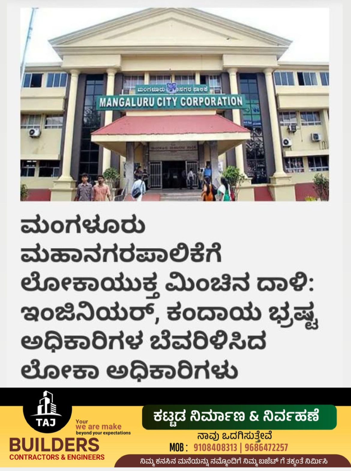 ಮಂಗಳೂರು ಮಹಾನಗರಪಾಲಿಕೆಗೆ ಲೋಕಾಯುಕ್ತ ಮಿಂಚಿನ ದಾಳಿ: ಇಂಜಿನಿಯರ್, ಕಂದಾಯ ಭ್ರಷ್ಟ ಅಧಿಕಾರಿಗಳ ಬೆವರಿಳಿಸಿದ ಲೋಕಾ ಅಧಿಕಾರಿಗಳು.